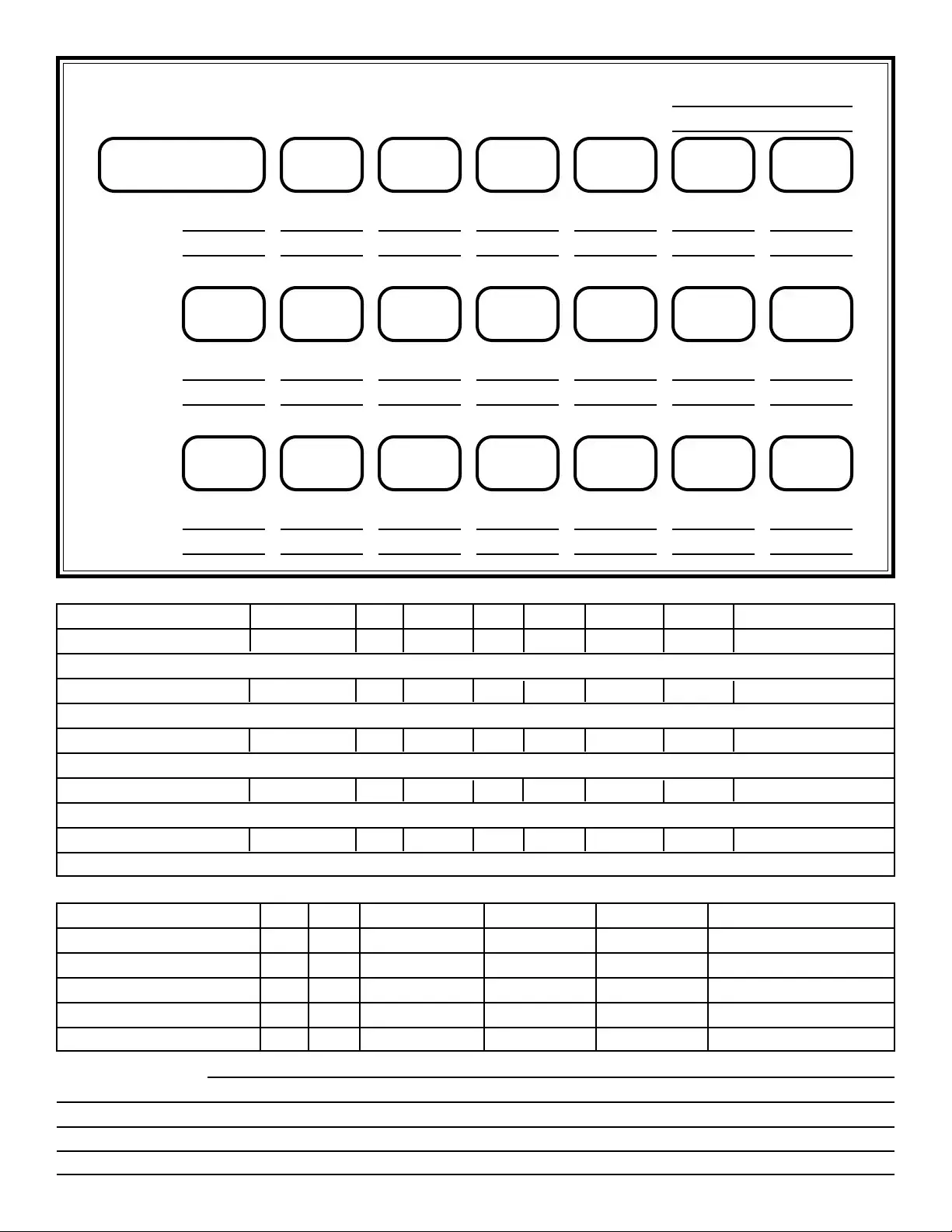 Experience points (XP) are earned through various in-game actions, such as defeating enemies or completing quests. The form includes a section for recording total XP and the amount needed for the next level. Keeping this updated will help you manage your character's progression.