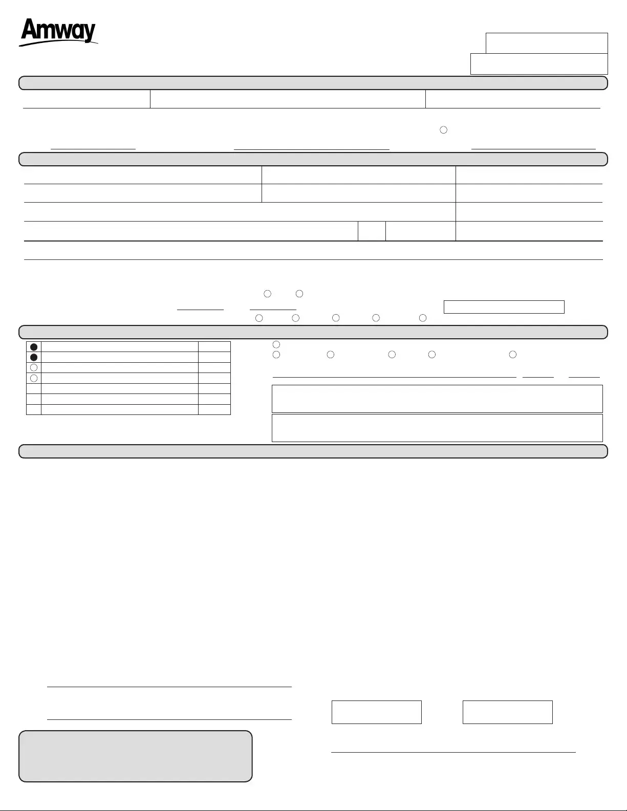 RETURN THIS COMPLETED FORM TO AMWAY TO FINALIZE YOUR IBO REGISTRATION.