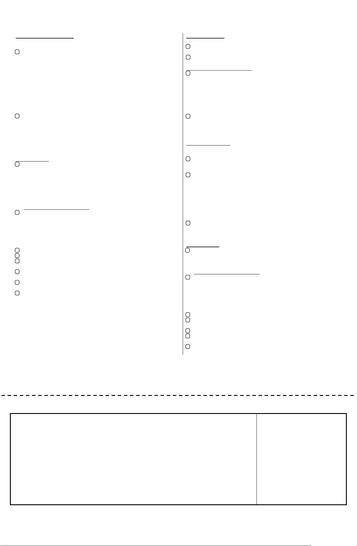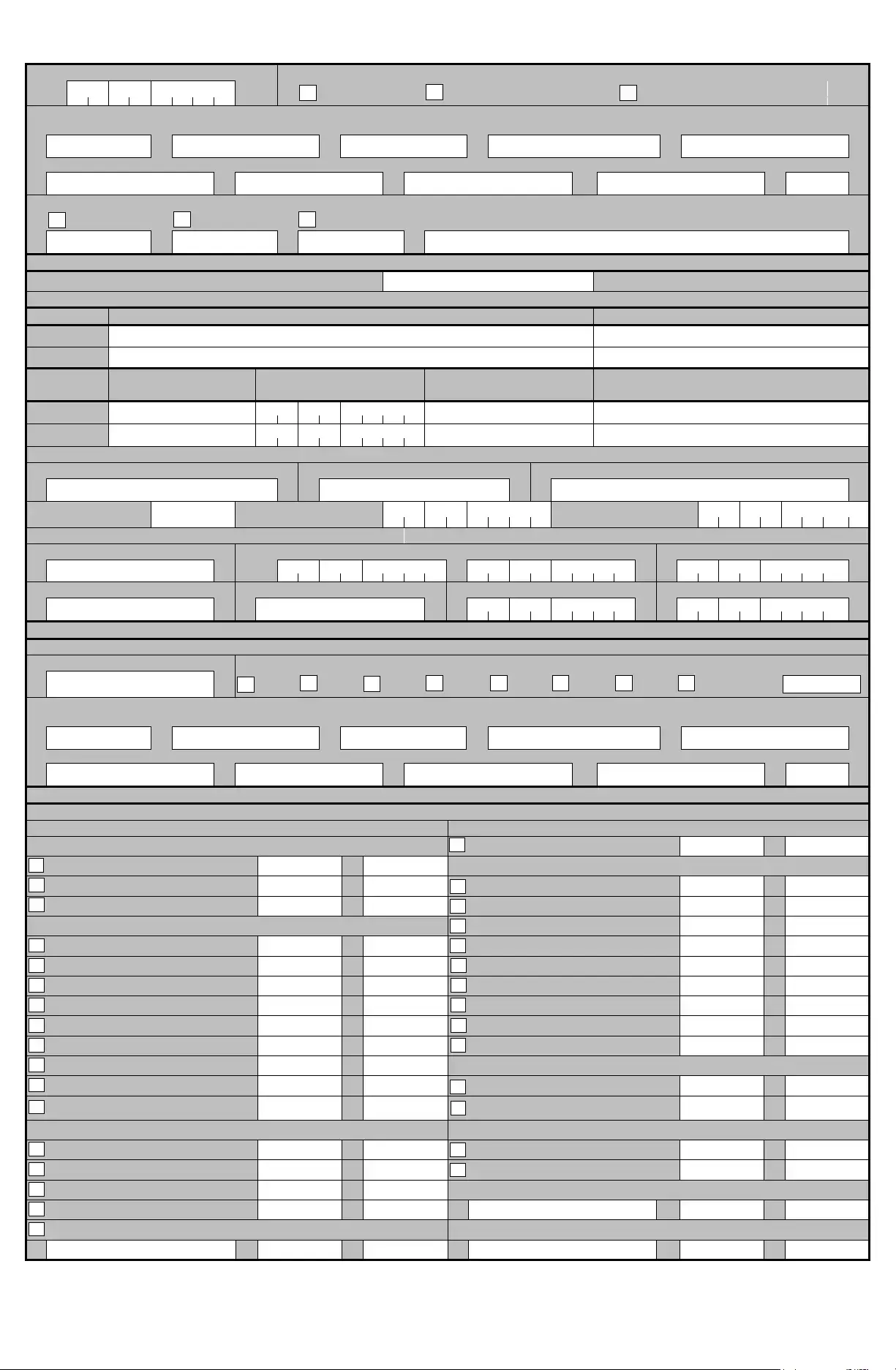 Fill in all applicable white spaces. Mark all appropriate boxes with an “X”.