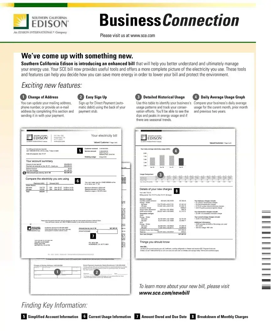 The Edison Electricity Bill is also comparable to a phone bill. Phone bills detail the services used, including call durations and data usage, along with the associated costs. Like electricity bills, they typically provide a summary of previous payments and outstanding balances. Both documents may offer options for payment, such as online or automatic payments, and emphasize the importance of timely payments to avoid service interruptions. They often include customer service contact information for inquiries or disputes.